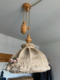 Deckenlampe mit verstllbaren Hängezug, mechanische Teile Naturholz, Schirmbezug grobes Leinen naturfarben, sehr gut erhalten und voll funktionsfähig - nur Abholung ! |